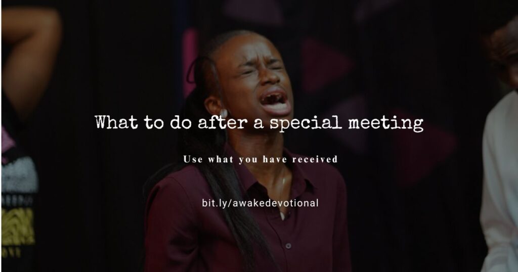 You may want to pull back on spiritual activities. After all, you prayed for 4 hours at a stretch! So it may look like a good idea to “rest” a bit. But in actual fact that is the opposite of what you should do. You don’t want to be caught lagging at all because in doing that, you give room for you to forget what you’ve received, to fall back into bad habits and to allow the devil deceive you into thinking if you have actually received anything.